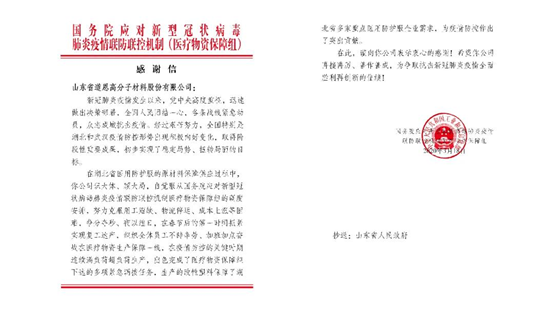 The letter said, “2020 was an extraordinary year. The COVID-19 broke out and the epidemic raged. In accordance with the decisions and deployment of the Party’s Central Committee and the State Council, the Ministry of Science and Technology, in conjunction with 12 departments, set up research teams and expert groups to mobilize the national science and technology system to fight COVID19. " The effect of scientific research was inseparable from the participation and support of your company. Here, we would like to express heartfelt thanks for your work and efforts in participating in the epidemic prevention and control emergency scientific research project". The thanks-letter expresses gratitude for the contributions made by Dawn people in undertaking emergency research and development projects, and at the same time encourages enterprises to make greater breakthroughs in scientific research. As early as March 18th in 2020, a letter of thanks from the State Council made Dawn polymer on the "hot search".