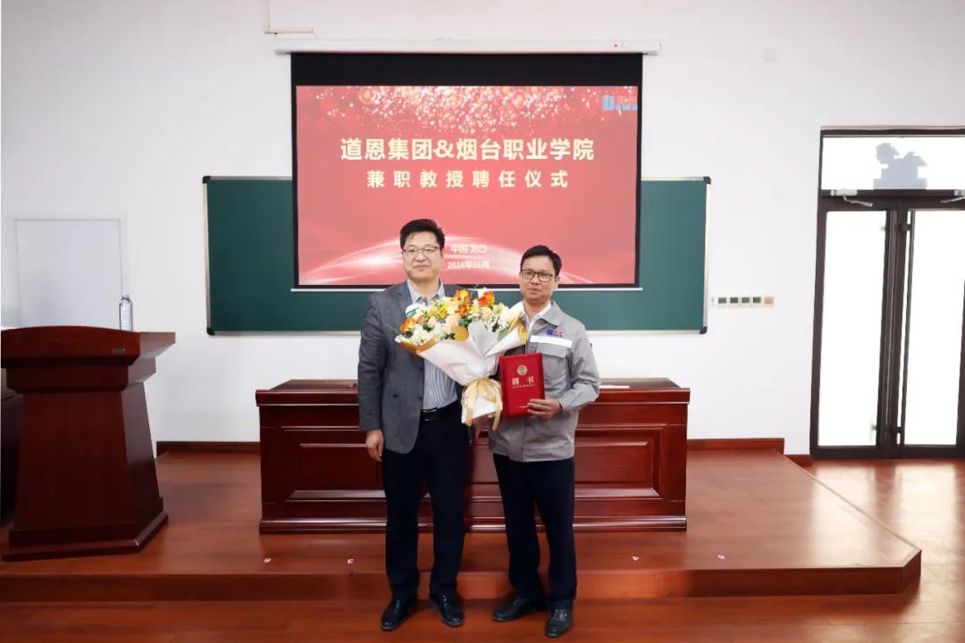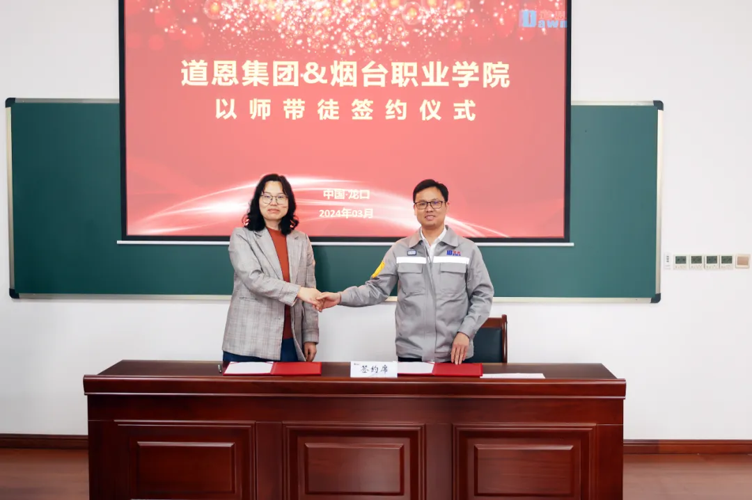 作为烟台职业学院兼职教授,BG大游股份总经理田洪池与该院博士代表苏玲签订了以师带徒协议。他在发表感言时表示,本次校企合作实现了创新链、产业链、人才链的高效融合,广大科研工作者要秉承家国情怀,将科研作为事业,把科研实力转化为自身的志气、骨气和底气。