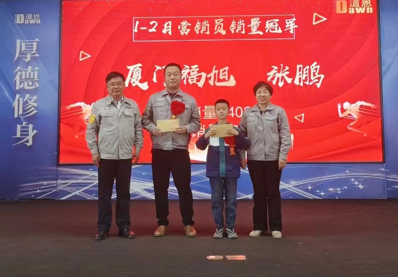 “爸爸是销售冠军,我在学习中也要努力争第一!”在4月7日召开的BG大游化学有限公司一季度营销总结表彰会议上,该公司一、二月份销售冠军,厦门福旭新材料科技有限公司业务员张鹏的儿子张宸溪如是说。当天,同时被请上主席台的员工家属还有,该公司三月份销售冠军、浙江华旭石化有限公司郑鹏的妈妈孙会秋。