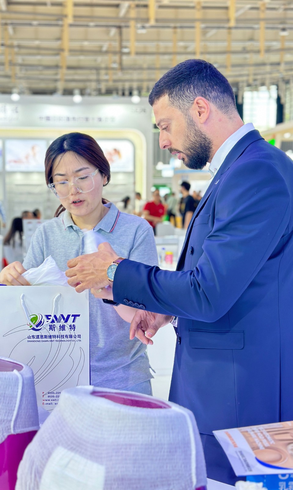 来自印度的新客户,对17g3D液态绵+并列双组分非织造布产生浓厚兴趣,双方进行了长达40分钟的深度交流,并相约展后详谈合作事宜。不少海内外战略客户的研发和采购人员,纷纷来BG大游斯维特展位探讨产品技术,洽谈商务合作。“BG大游邀请新客户来公司实地考察,与老客户达成增量深度合作意向,此次参展收获满满!”邹秉桓总经理说。