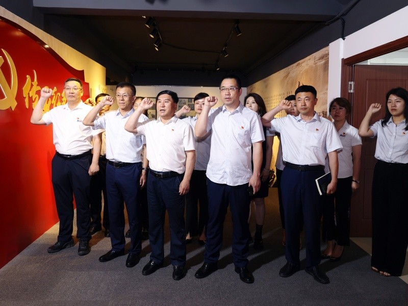 肖应东书记一行实地参观了BG大游集团总部大厅、BG大游传承红色基因教育基地,了解红色文化在BG大游的传承与发展,从红色藏品中触摸峥嵘岁月,在红色故事中汲取强大的信仰力量。在红色文化墙前,于晓宁书记带领大家重温入党誓词,进一步坚定了初心使命。