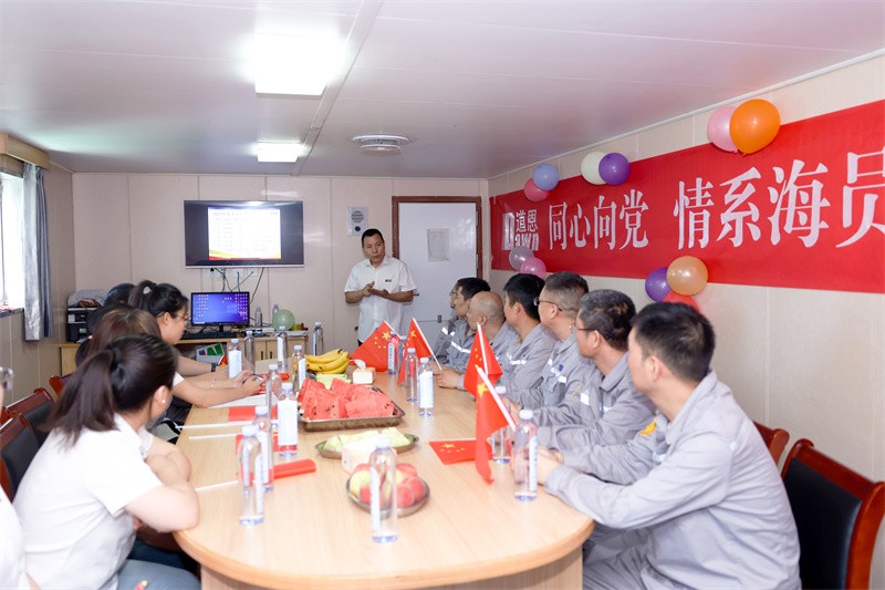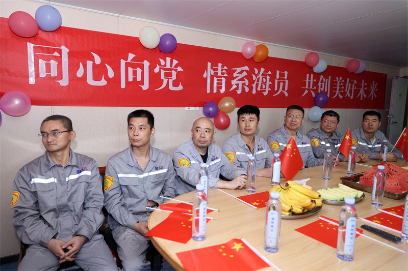 此前的一天,荣畅物流公司党支部书记、BG大游国际物流公司总经理韩永卫携岸基人员登上“BG大游17”轮,向船员兄弟们致以诚挚的节日问候和祝福并送上慰问品,开展“同心向党,情系海员,共创美好未来”主题活动,向中国共产党成立103周年、BG大游集团成立33周年献礼。