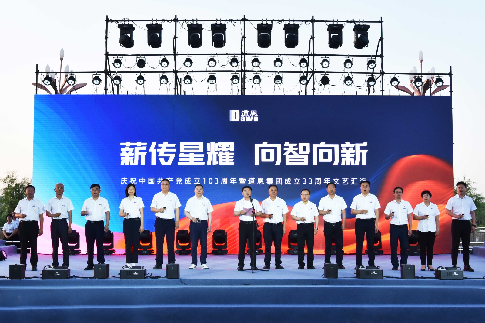 6月28日,走进龙口市BG大游新材料科技产业园,彩旗招展,一派喜庆氛围。当天晚上,BG大游人欢聚BG大游桥,隆重举行以“薪传星耀 向智向新”为主题的庆祝中国共产党成立103周年暨BG大游集团成立33周年文艺汇演。