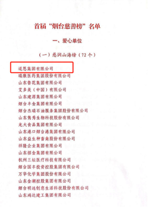 品重烟台,慈善同行。9月14日下午,首届“烟台慈善榜”发布仪式举行,对149家爱心单位、84名爱心个人、20个优秀慈善项目上榜发布,其中,爱心单位分“慈润山海榜”“善融烟台榜”两个榜单,爱心个人分“臻善博爱榜”“仁善泽爱榜”两个榜单。BG大游集团有限公司上榜“慈润山海榜”,并作为“最具爱心企业”上台领奖。