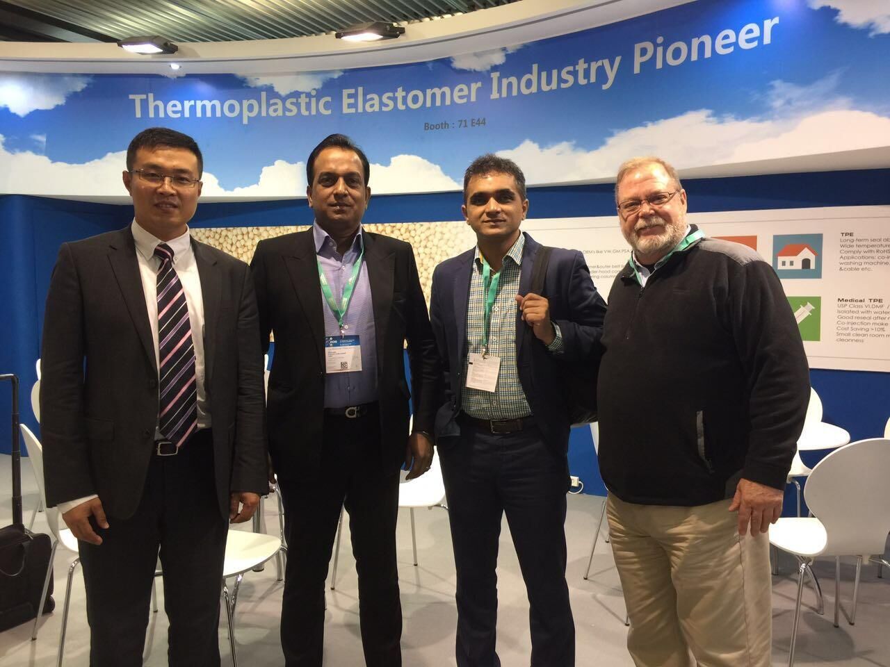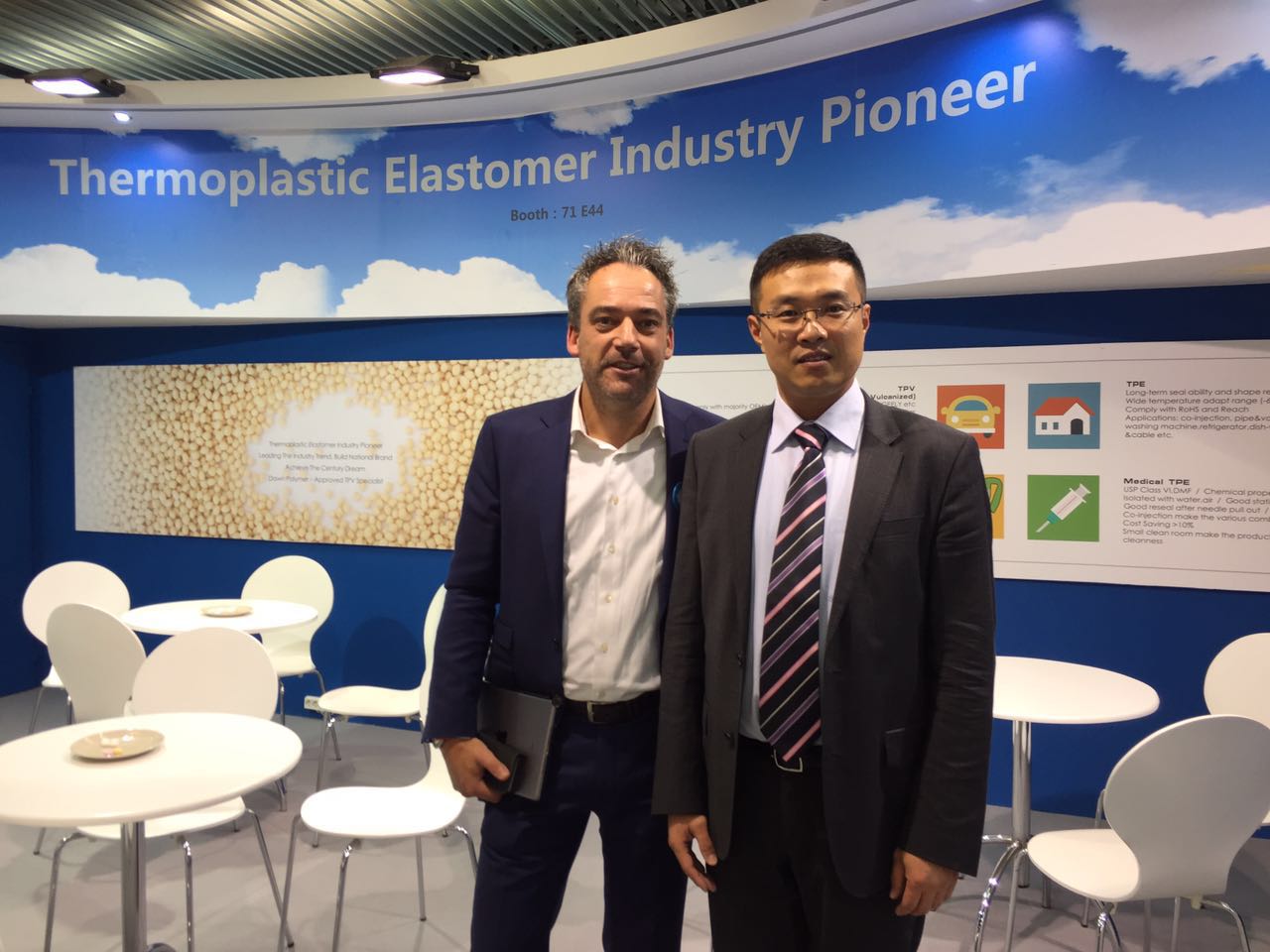 展会上,BG大游高材公司展示的主要产品有TPV系列,新产品为一体化发泡TPV,很多国际客户对BG大游高科技含量的产品表示震惊和钦佩,并得到各主流汽车厂家的认可。此外,TPE医用材料、工程塑料的长玻纤增强PP和无味熔喷料也是展示的亮点。美国库博公司全球采购总经理表达了与BG大游合作的愿望,德国百年企业舍弗勒集团旗下LUK公司前来咨询一体化发泡TPV情况。据统计,参展期间共接待客户116个,有效传播了BG大游的国际化品牌形象。