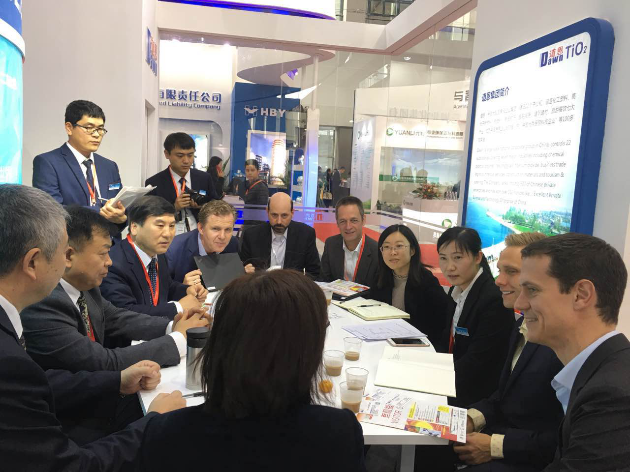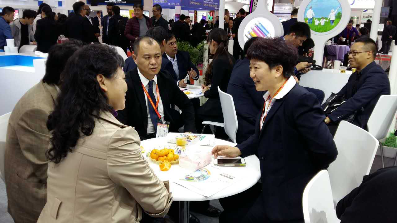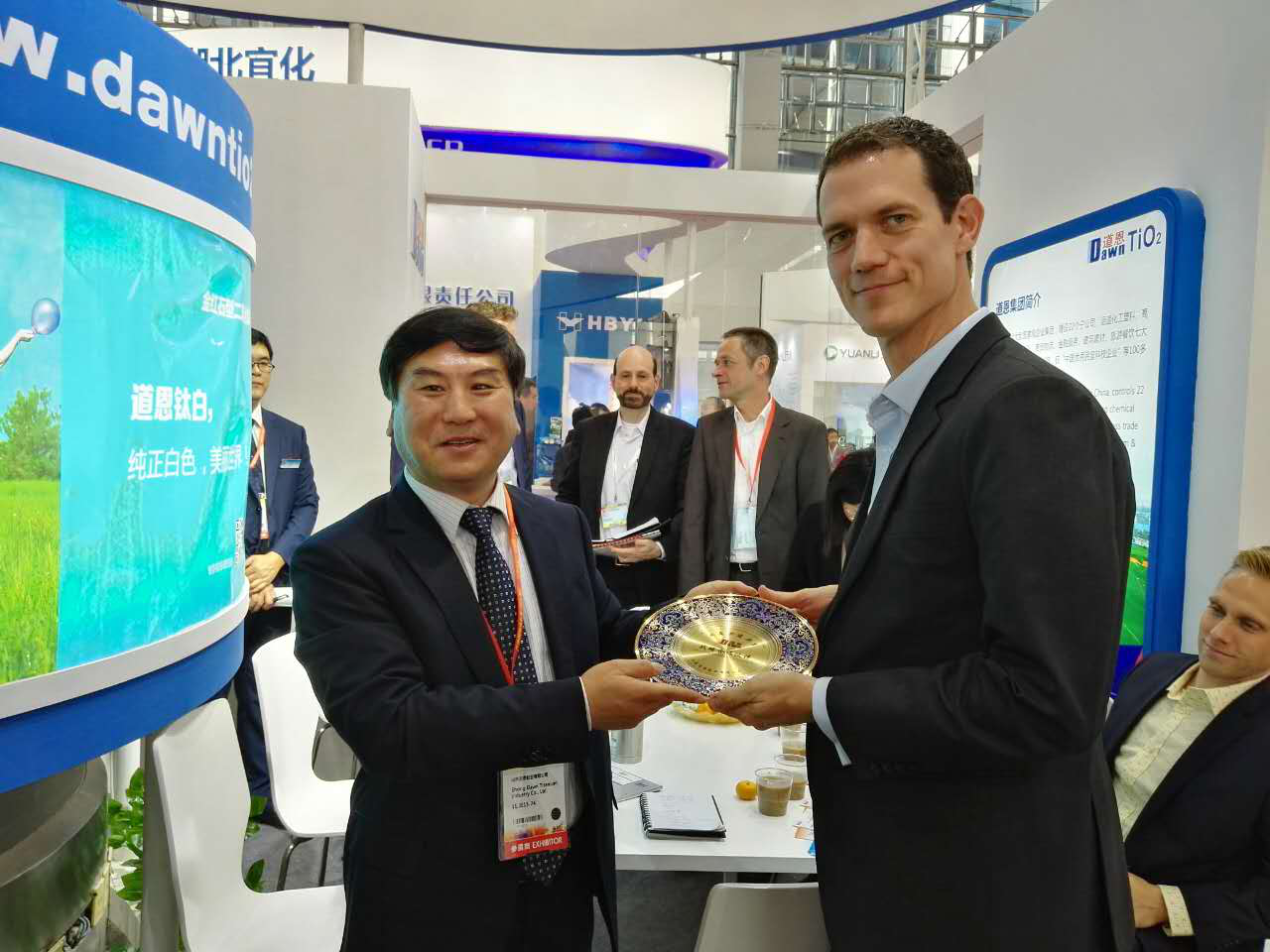 作为世界第三大油墨生产商,盛威科油墨有限公司全球采购总监NevenBarctel慕名访问BG大游展台,于晓宁总裁与客人进行友好交流。双方就建立长期战略合作伙伴关系达成共识,共同研发油墨专用钛白粉,成为盛威科全球统一牌号。BG大游集团常务副总裁索延辉用流利的日语和日本立邦洽谈2017年合作事宜,经过技术交流,最终确定明年第一季度订单。