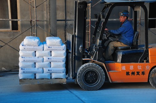 接下来,叉车班组织叉车司机进行吨包整形比赛,每人对5吨产品进行整形操作,完成后运至指定位置,以整形高度的要求和操作时间来确定胜负。经过比拼,叉车司机刘成涛在用时最短的情况下,凭借整形高度基本一致,获得该组冠军。