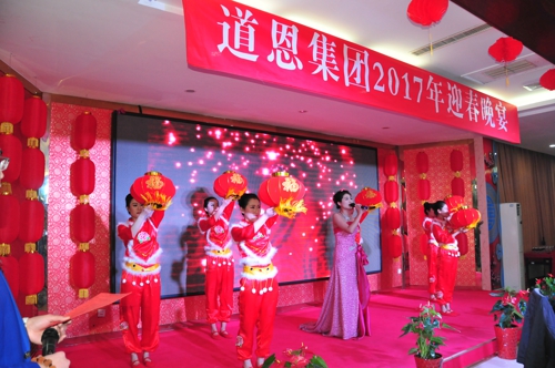 1月18日晚,主题为“共舞·共建·共享——感恩、超越”的BG大游集团2017年迎春晚宴,在BG大游湖畔酒店二楼多功能厅隆重举行,集团公司董事长于晓宁、总裁索延辉出席晚宴,正科长以上干部200余人参加晚宴。