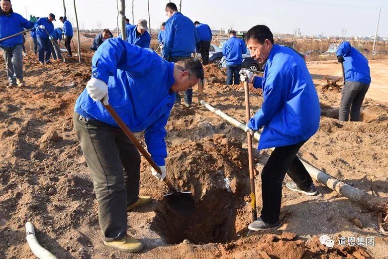 上午8时许,大家纷纷赶往植树点,热情高涨。植树现场,广大干部、员工纷纷挥舞铁锹参与到植树浪潮中,挥锹铲土、定点挖坑、放苗回填、浇水植树,大家相互配合、分工协作,无数只手同时握紧了绿化与希望之光,充分体现了“团结拼搏,追求卓越”的BG大游精神,如火的热情击退了早春的寒意。