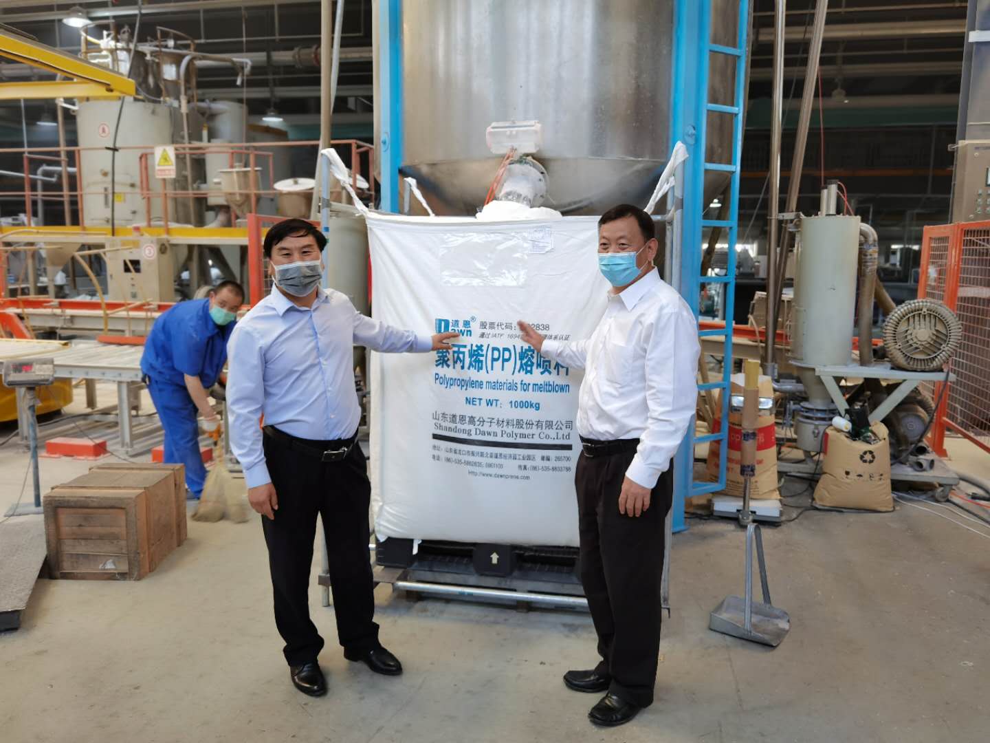 王强书记一行先后参观了BG大游股份一楼产品展厅、聚丙烯熔喷专用料车间,详细了解口罩布聚丙烯熔喷专用料生产以及相关产业链情况。他高度赞扬了BG大游保质保量保供给的战“疫”行动,并对BG大游在疫情防控物资方面为中国石化提供的支持和帮助表示感谢。