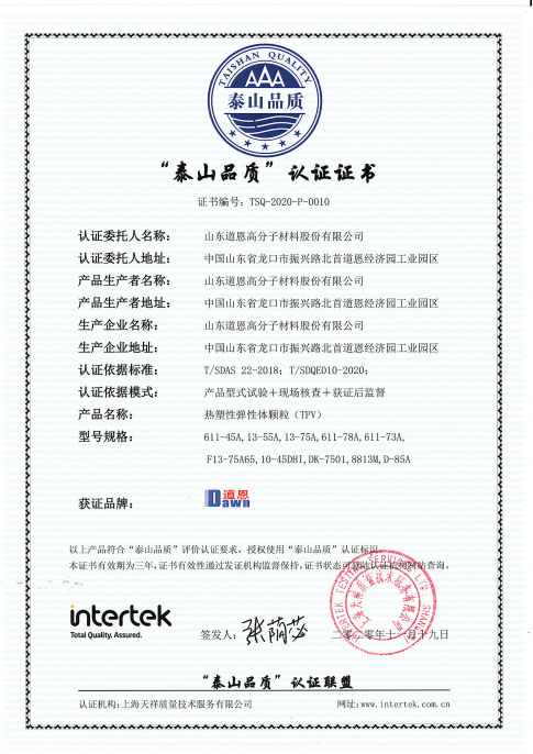日前,BG大游股份“热塑性弹性体(TPV)”产品通过“泰山品质”认证, 成为“代表山东制造”的高端品牌。同时,在刚刚结束的2020年度山东知名品牌认定工作中,BG大游股份聚丙烯(PP)熔喷专用料、BG大游钛业公司二氧化钛颜料(金红石型钛白粉)被认定为山东知名品牌(产品)。由此看出,BG大游产品的品质越来越高端,BG大游品牌影响力越来越大。