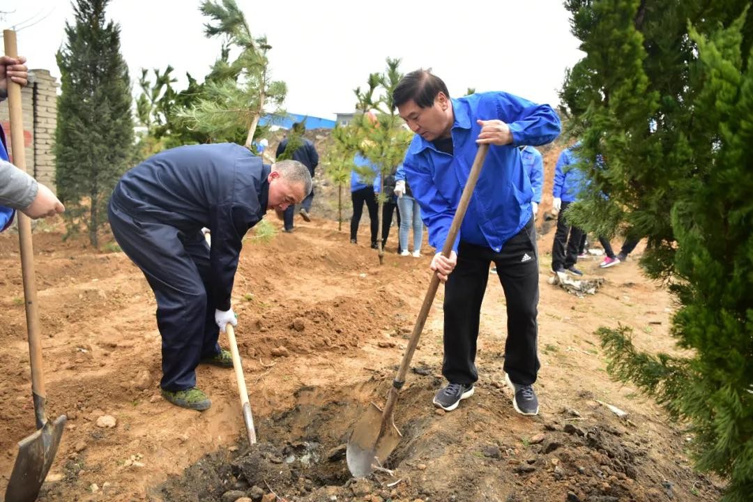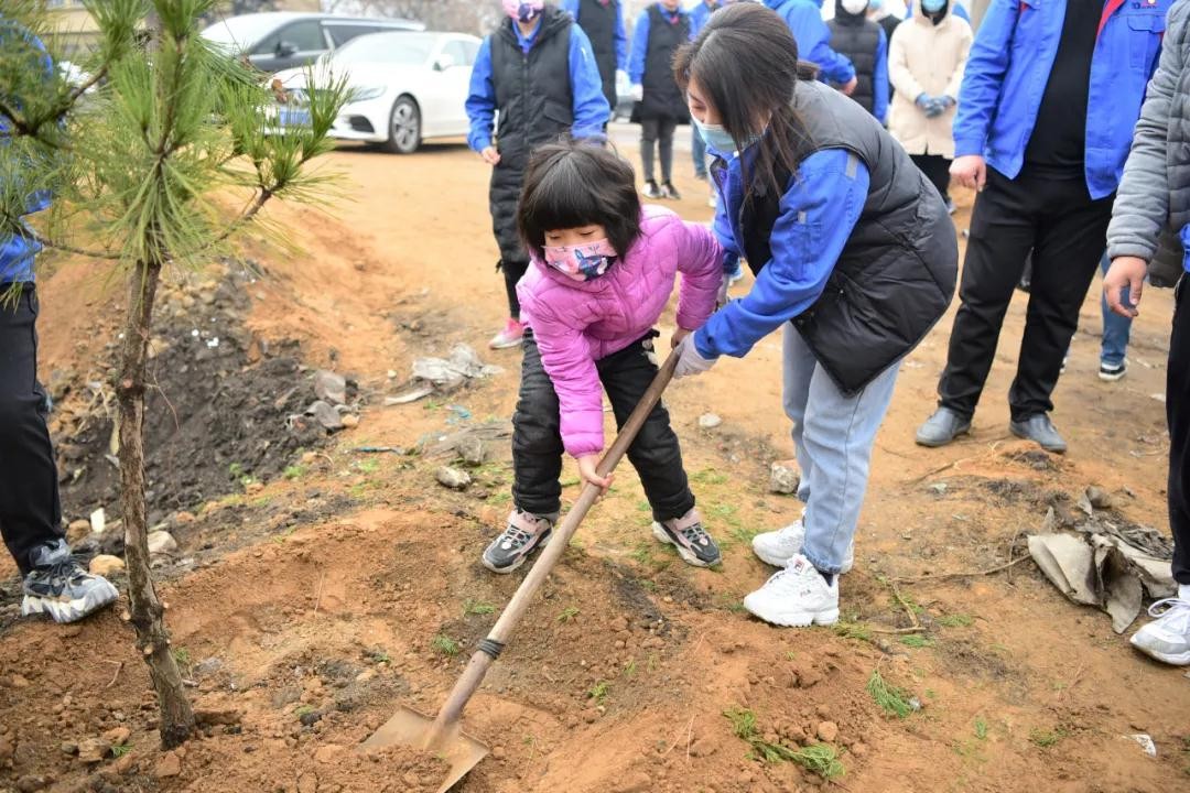 上午8时许,在位于龙口市新材料新能源产业园北皂路的植树地点,数百名干部员工积极投身植树活动。于晓宁董事长与大家一起拿起铁锨、挖坑植苗,铲土入坑、培实新土、修整树盆,活动现场一派热火朝天的劳动景象。可喜的是,植树队伍中出现了“小BG大游人”,他们在大人的指导下拿起铲子为树苗培新土,从小培养环保意识和生态理念。