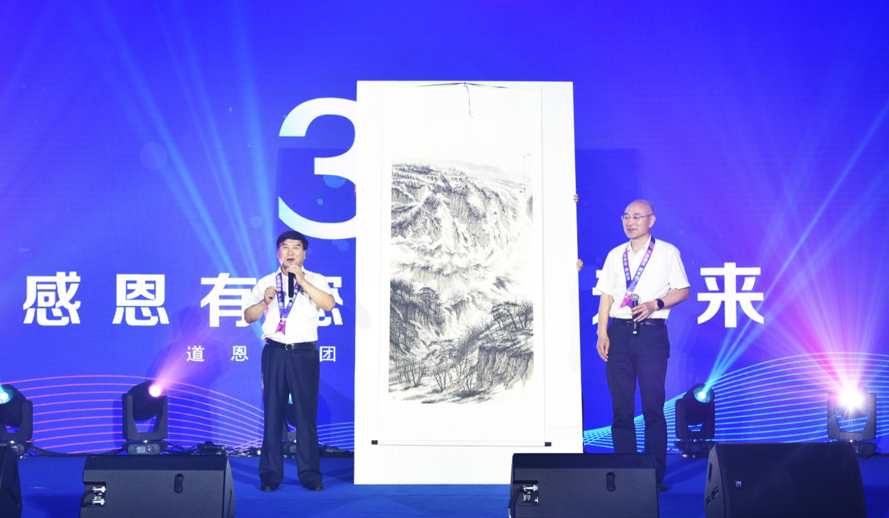 随后,主持人宣读了中石油、中石化等国内知名客户以及浙江大学等高校发来的贺电与贺信。在活动现场,青岛科技大学校长陈克正带来了一份特殊的礼物——《骊山印象》图。“从画中可以看到,山气势磅礴,层峦叠嶂,高耸入云,林木遍野;寓意着BG大游背靠青山,事业稳固;山水相间,财源滚滚。”主持人如是介绍。