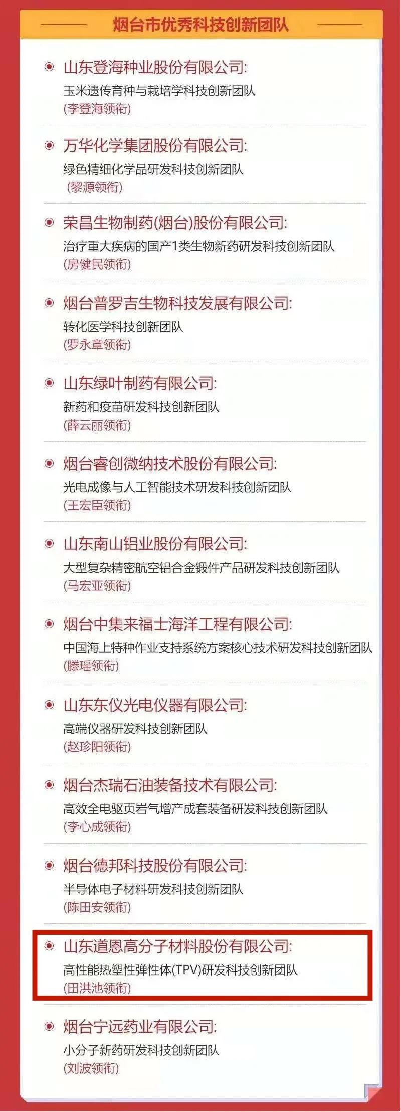7月18日上午,在烟台市企业家队伍建设大会上,BG大游集团被授予“2020年度烟台市十佳功勋企业”;BG大游集团董事长、总裁于晓宁被授予“2020年度烟台市十佳功勋企业家”;由BG大游股份总经理田洪池领衔的高性能热塑性弹性体(TPV)研发科技创新团队被授予“烟台市优秀科技创新团队”。
