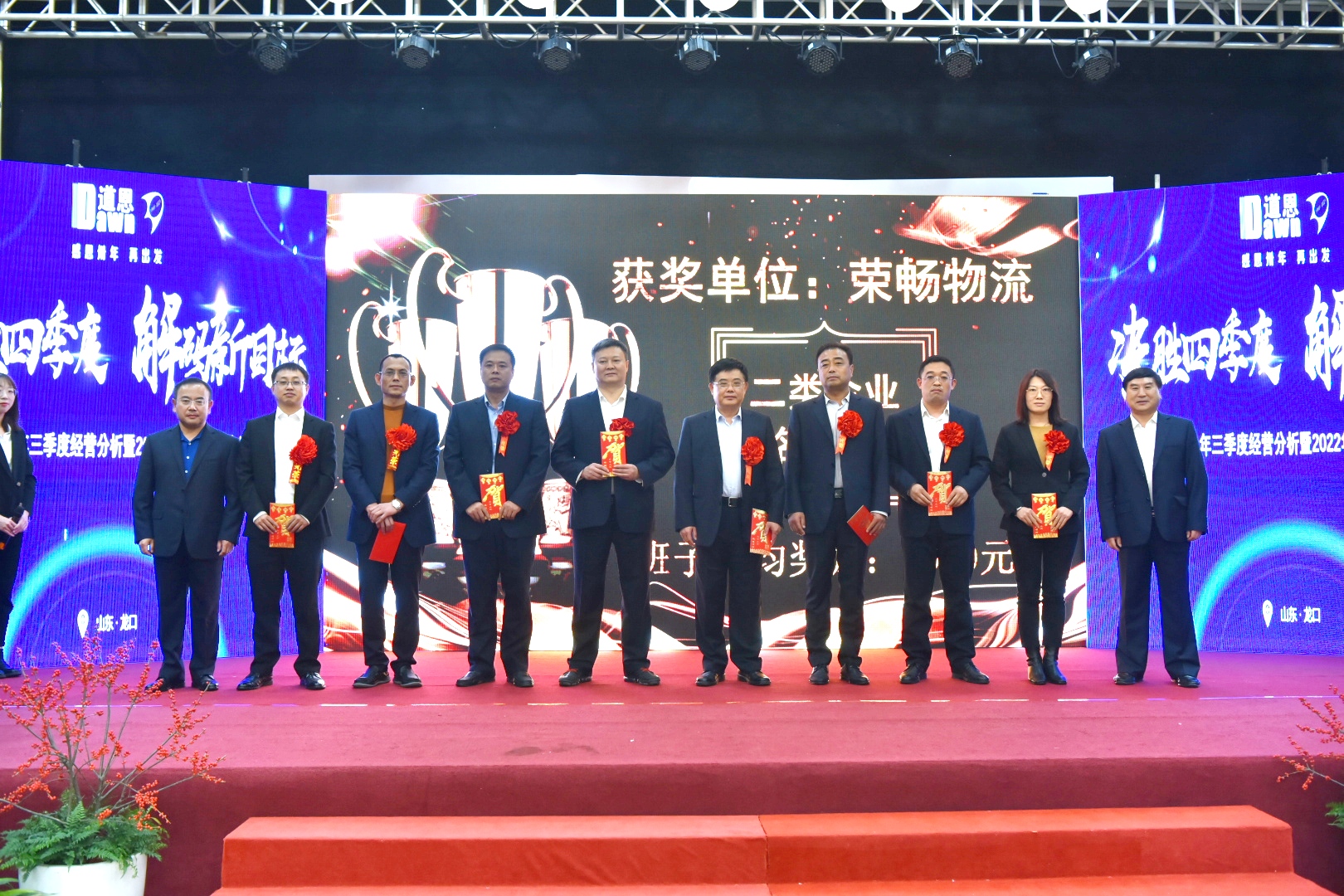会议对三季度超额完成经营目标,以及取得季度效益创优和季度双增长奖的经营单位进行表彰奖励。集团公司领导班子成员分别为获奖单位颁奖,获奖单位依次上台表态,展示了充满激情的团队士气,对冲刺全年目标信心满满,把“靠上、拼上、豁上”,“要急、要争、要抢”的精气神儿带到工作中去,以时不我待的热情、拼搏进取的激情、敢为人先的豪情,直面挑战,锐意进取,铆足干劲,再立新功。