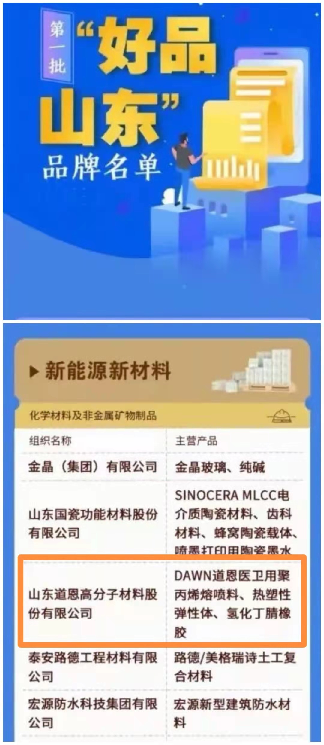 3月2日上午,山东省发布第一批“好品山东”品牌名单,BG大游股份“DAWNBG大游医卫用聚丙烯熔喷料、热塑性弹性体、氢化丁腈橡胶”产品名列其中,充分彰显了BG大游的品牌知名度和影响力。