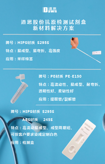 抗原检测中最重要的一环,是将提取管中的混合液滴入检测卡中。“BG大游推荐客户使用HIPS-S295S、ABS-245S试剂卡专用料,由于材料具有高成型流动性,可以缩短成型周期,提高生产效率和敏捷性,还能按照客户需要染成定制颜色。”王红总监说。