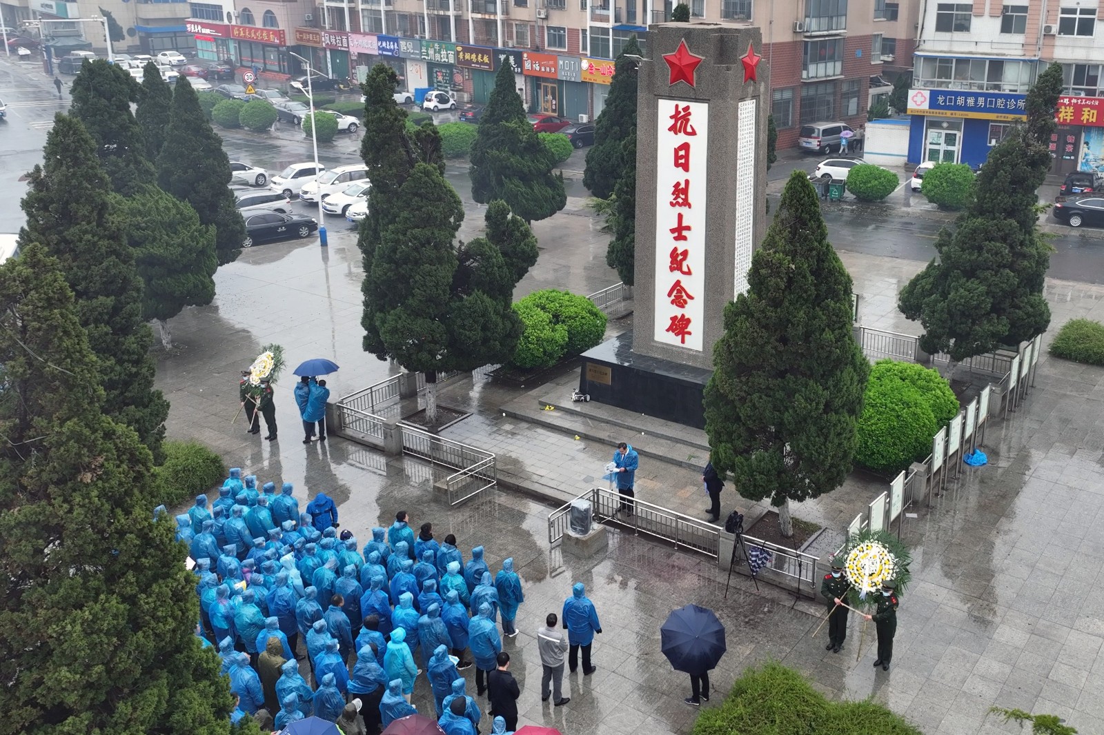 烟雨蒙蒙,寒烟无声。伴随着慷慨激昂的《义勇军进行曲》,在庄严肃穆的抗日烈士纪念碑前,大家怀着无比崇敬的心情向革命烈士鞠躬默哀,随后依次有序走向纪念碑,为在此长眠的先烈敬献花圈,并瞻仰革命烈士纪念碑,向烈士表示深切缅怀和崇高敬意。