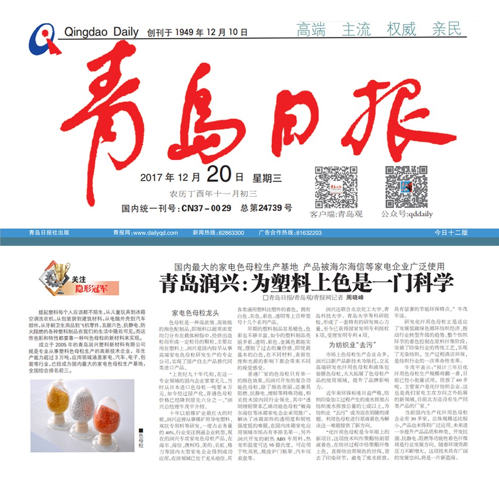作为国家认定高新技术企业,BG大游股份旗下青岛润兴公司专业从事塑料色母粒、功能母粒的研发、生产、销售和服务,是国内重要的料色母粒和功能母粒供应商,在细分领域位列行业前茅,成为青岛市隐形冠军、青岛市创新型企业。