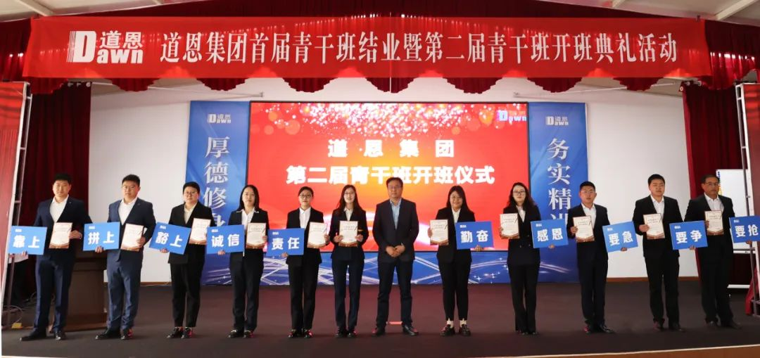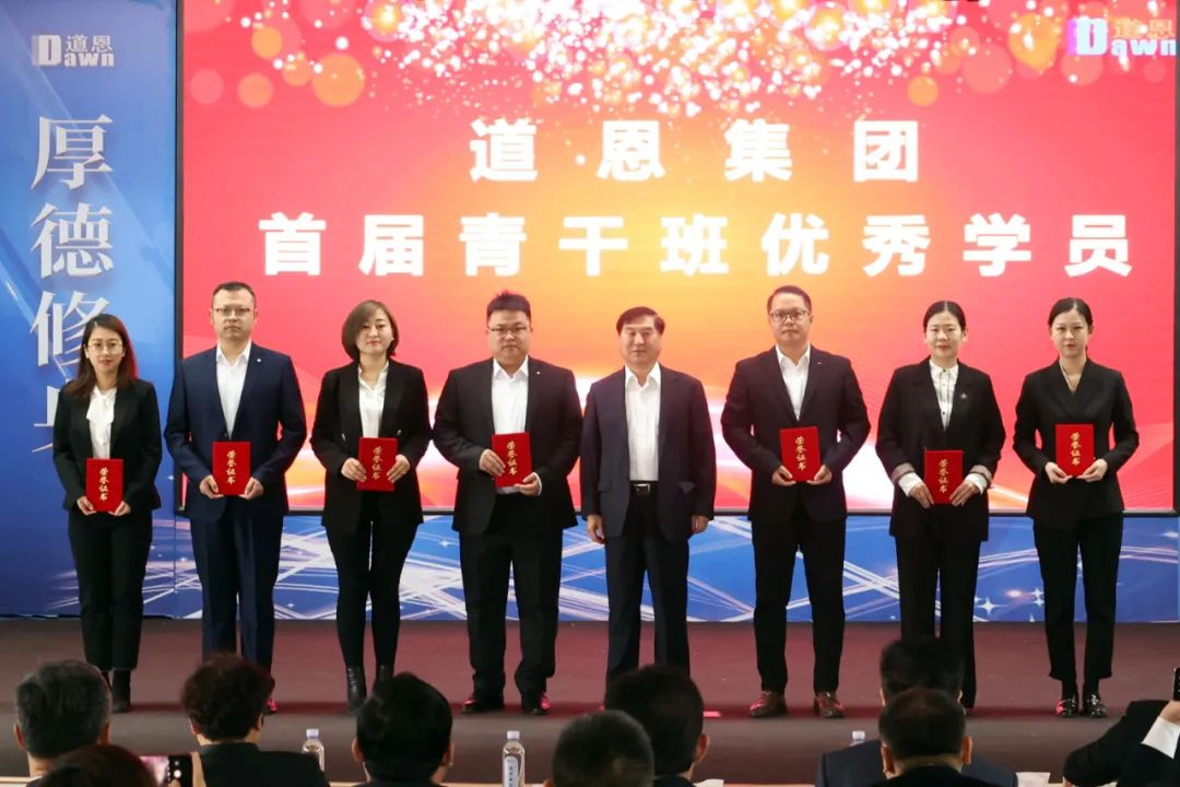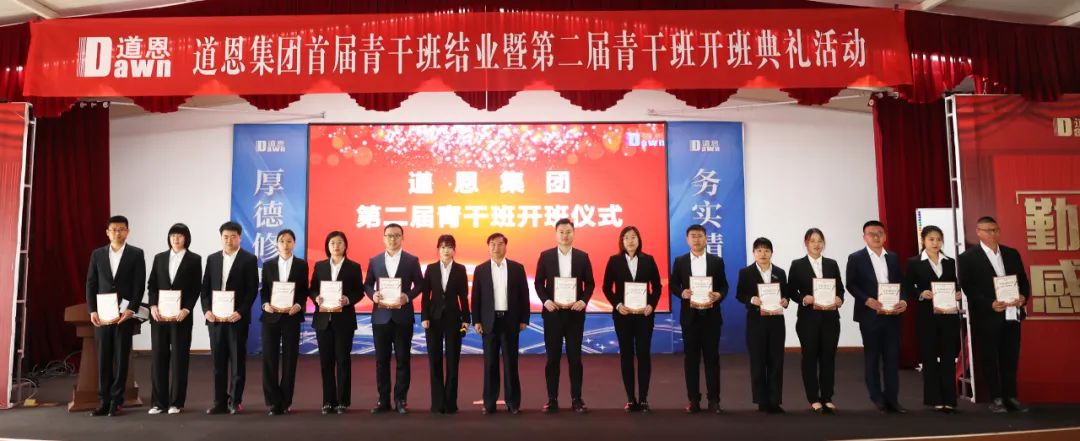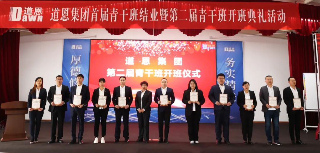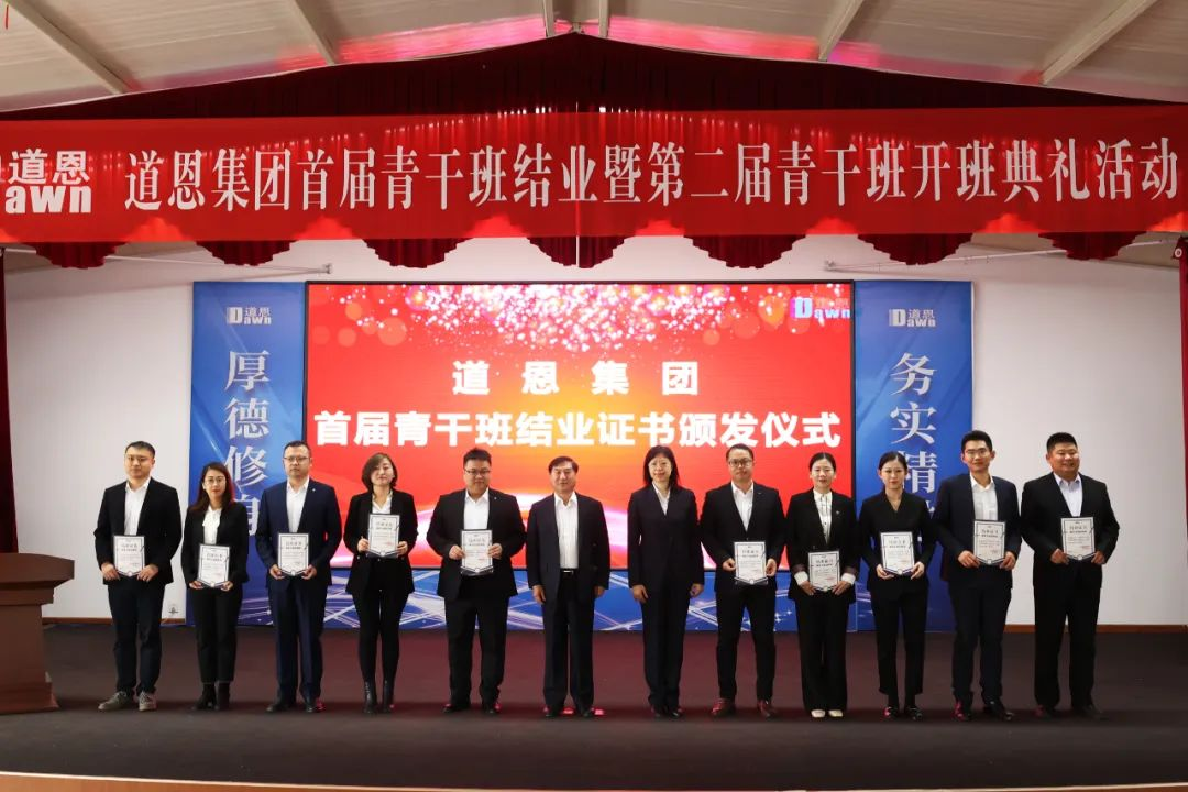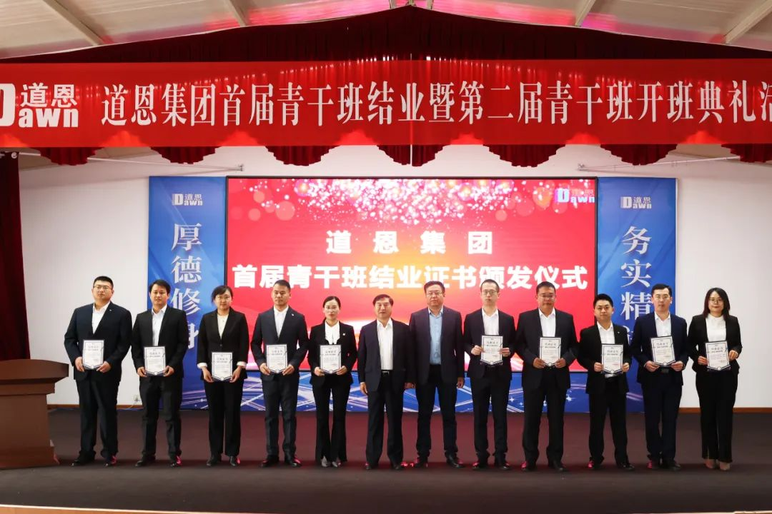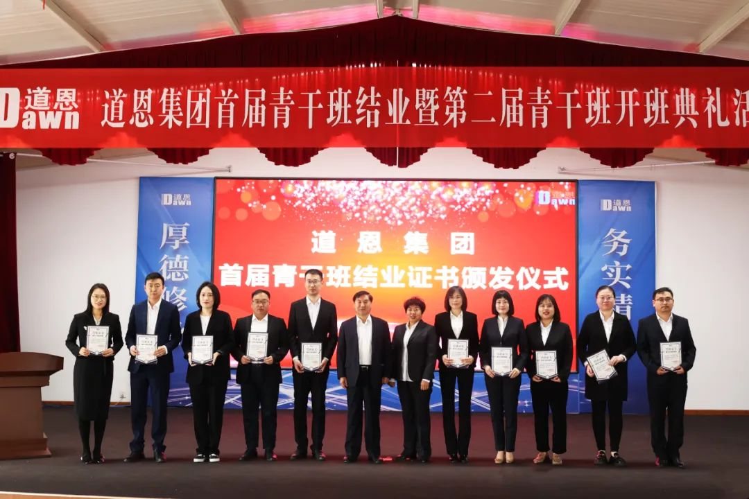 颁发结业证书环节掀起了活动高潮,参加活动的领导为在场的首届青干班学员颁发了于晓宁董事长亲笔签名的结业证书并合影留念,勉励大家奋发有为,未来可期。