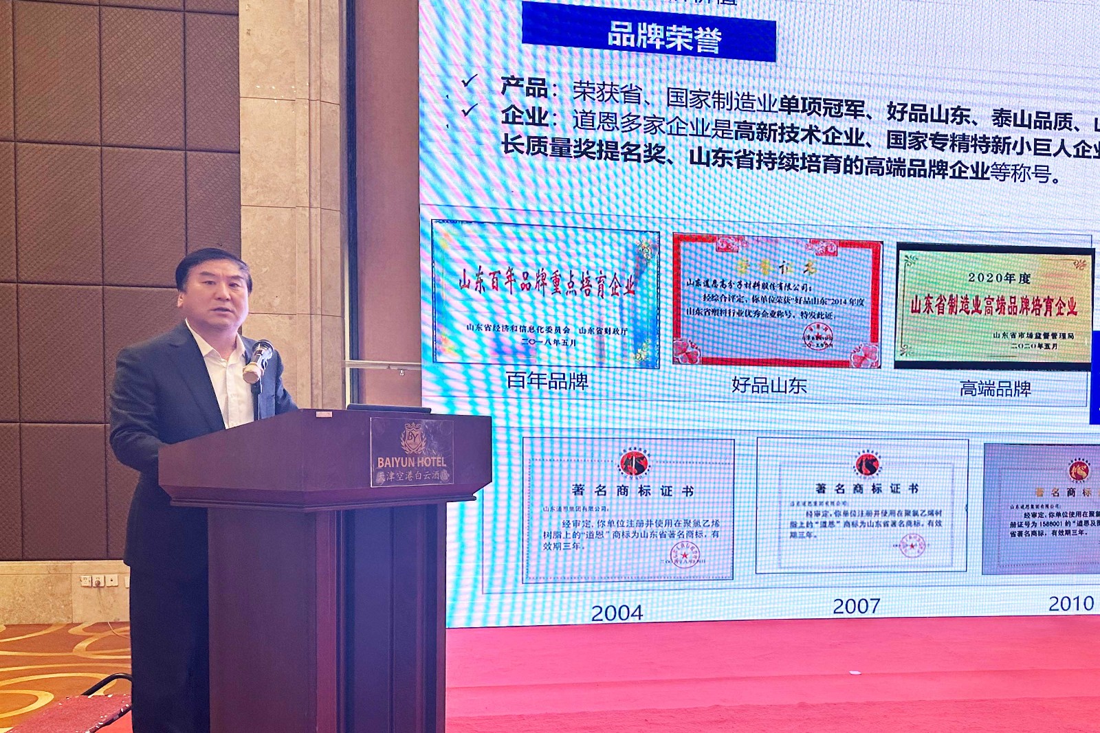 在进行经验交流分享时,于晓宁董事长介绍了企业发展、行业地位、园区建设、科研实力、核心产品、产业布局、社会责任等情况。“承蒙华北公司和各位同行的支持与信任,BG大游将珍惜这份荣誉,今后一如既往的保持紧密协作关系,共同推动塑料贸易行业的发展和进步。”